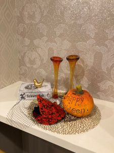 ホームでは、ハロウィンの置物に模様替えをしました!