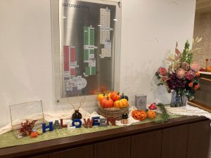 玄関から、エレベーターへ続く道にたくさんのかぼちゃが🎃🎃