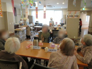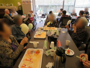 普段と違う雰囲気で、たくさんの人とのお食事は新鮮だったようでおしゃべりも弾みます