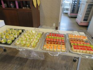 白、緑、ピンク等カラフルで見た目も楽しく、皆様笑顔で召し上がっていました。