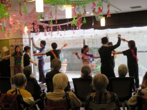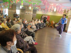 秋祭りのイベントのラストは、ミャンマー出身のケアスタッフを始めとした職員によるミャンマー舞踊です。