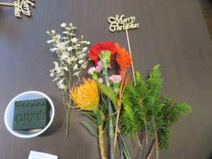 先生からお花の説明があり、その後華やかなお花の作品作りに挑戦しました。