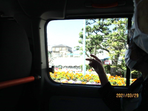 花びらが地面に落ちた桜の絨毯も美しく。車内からでも暖かい陽気を感じる事が出来ました。
